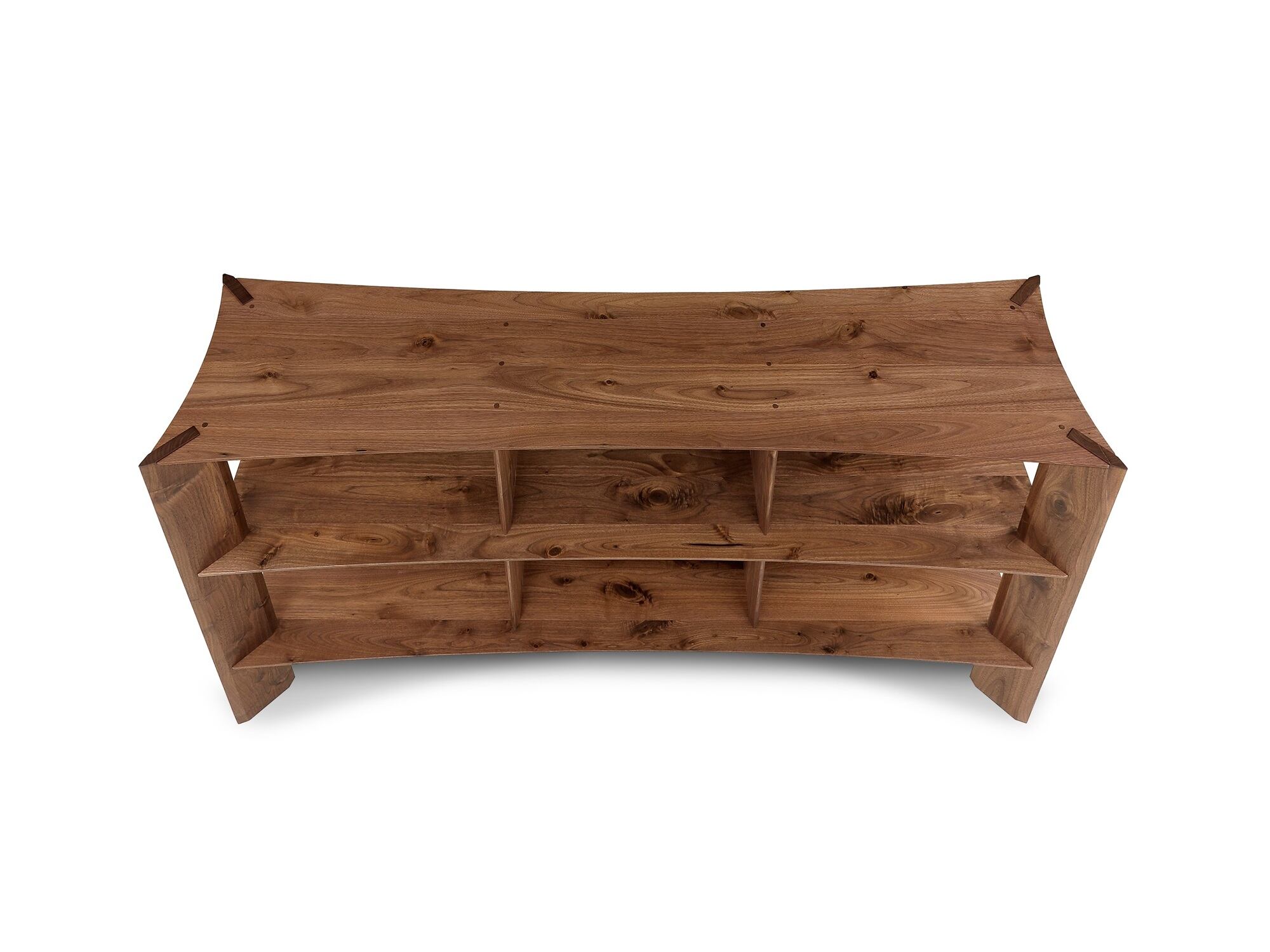 弓なりに湾曲させた棚と柱が交差し、船の船首を思わせる造形が「bow」の由来です。