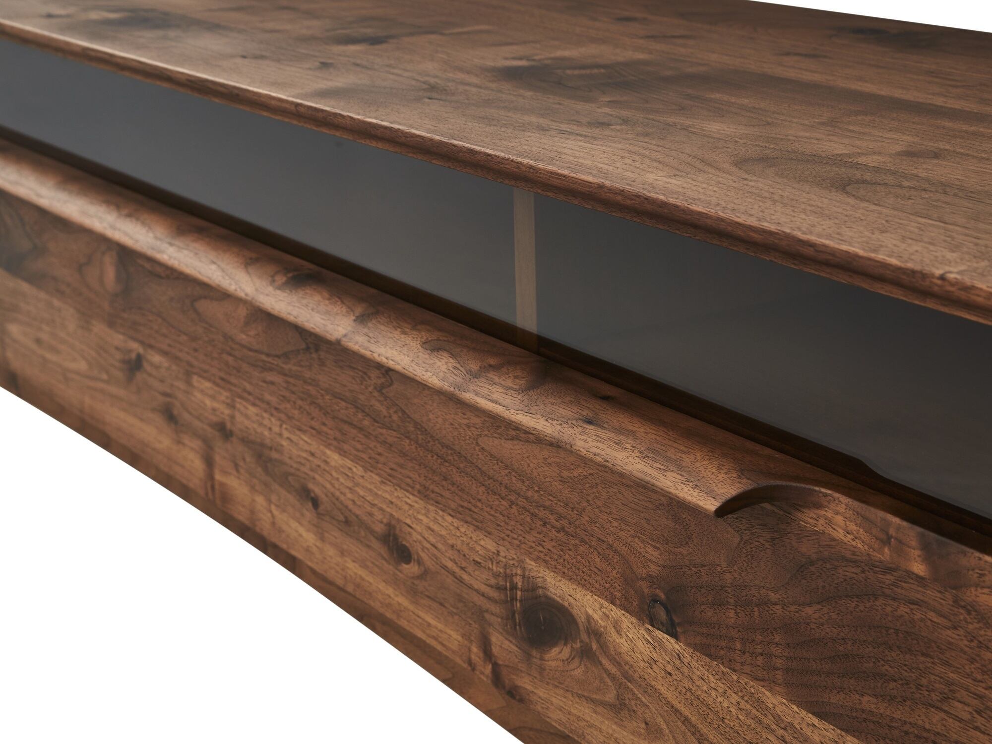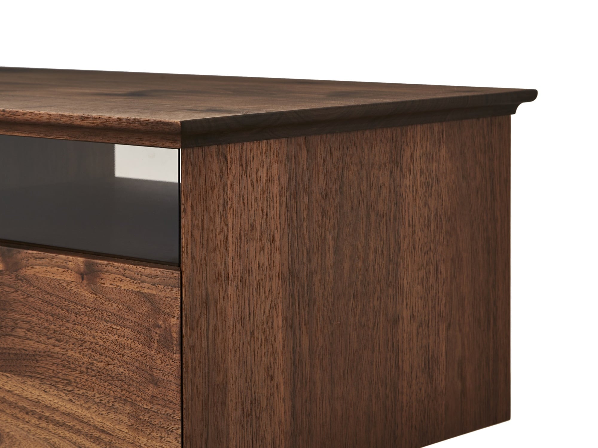 無垢材(天板,前板,脚部)/突板合板(側板,引き出し内部,棚)/ガラス(ブロンズフィルム貼)